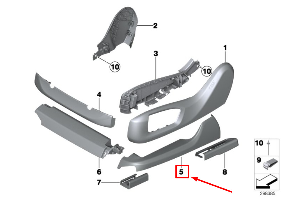 BMW 7 G11 Right Seat Exter. Upper Rail Finisher 52107406080 7406080 ORIGINAL