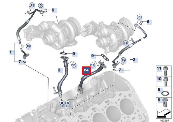 BMW X6 G06 exhaust turbocharger oil return line CYL. 5-8 11428681203 NEW ORIGINAL
