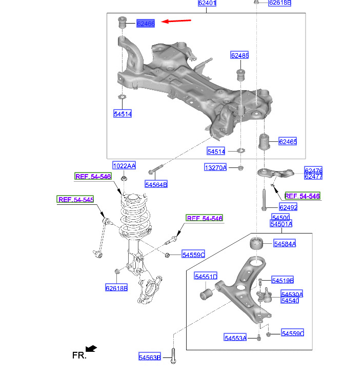 CONDITION: 100% NEW AND GENUINE | Hyundai Kona MK1 Front Cross Beam Mounting Journal 62485F2100, New Original | New auto parts online for the best price!