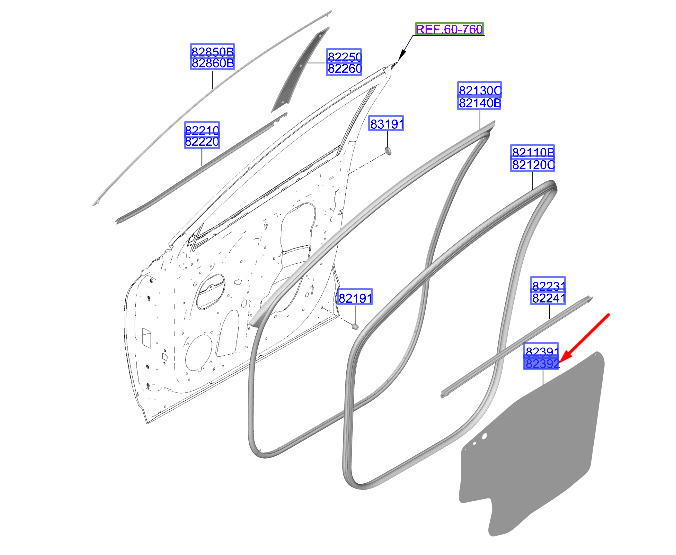 CONDITION: 100% NEW AND GENUINE | Hyundai Tucson NX4 MK4 Front Left Door Gasket 82392N7100, Original | New auto parts online for the best price!