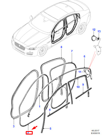 Jaguar XE X760 door gasket front left T4N22920 NEW ORIGINAL