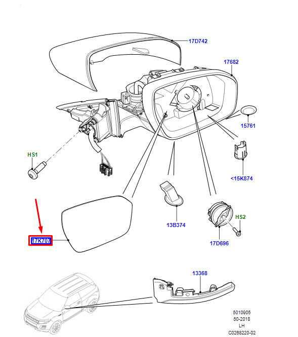 CONDITION: 100% NEW AND GENUINE | LR Range Rover Evoque L538 mirror glass front left LR093179 NEW original | New auto parts online for the best price!