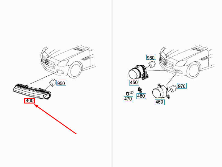 CONDITION: 100% NEW AND GENUINE | Mercedes-Benz SLK R172 daytime running light front right A2128205059 NEW REAL | New auto parts online for the best price!