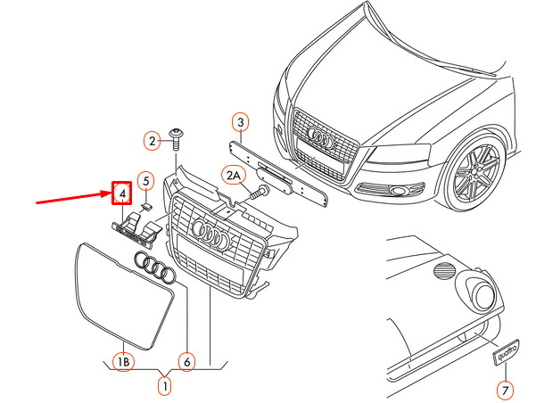 VW/AUDI inscription – 8P0853736A2ZZ Fitment: A3 (2004 – 2021), A3 Cabriolet (2015 – 2021), A3 (2022 – 2024) 8P0853736A2ZZ