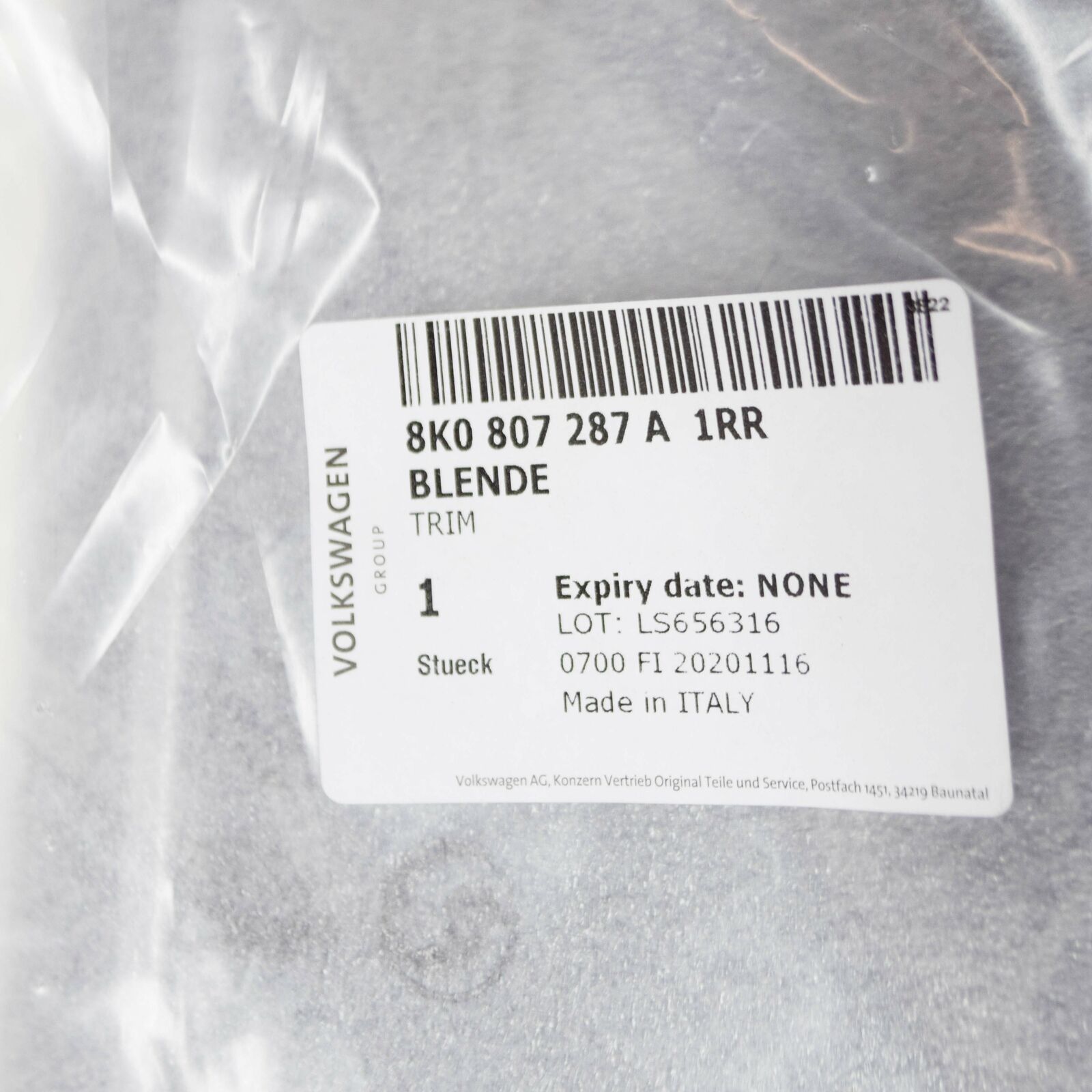 VW/AUDI trim for licence plate – 8K0807287A1RR | 8K0807287A1RR | 8K0-807-287-A-1RR | |