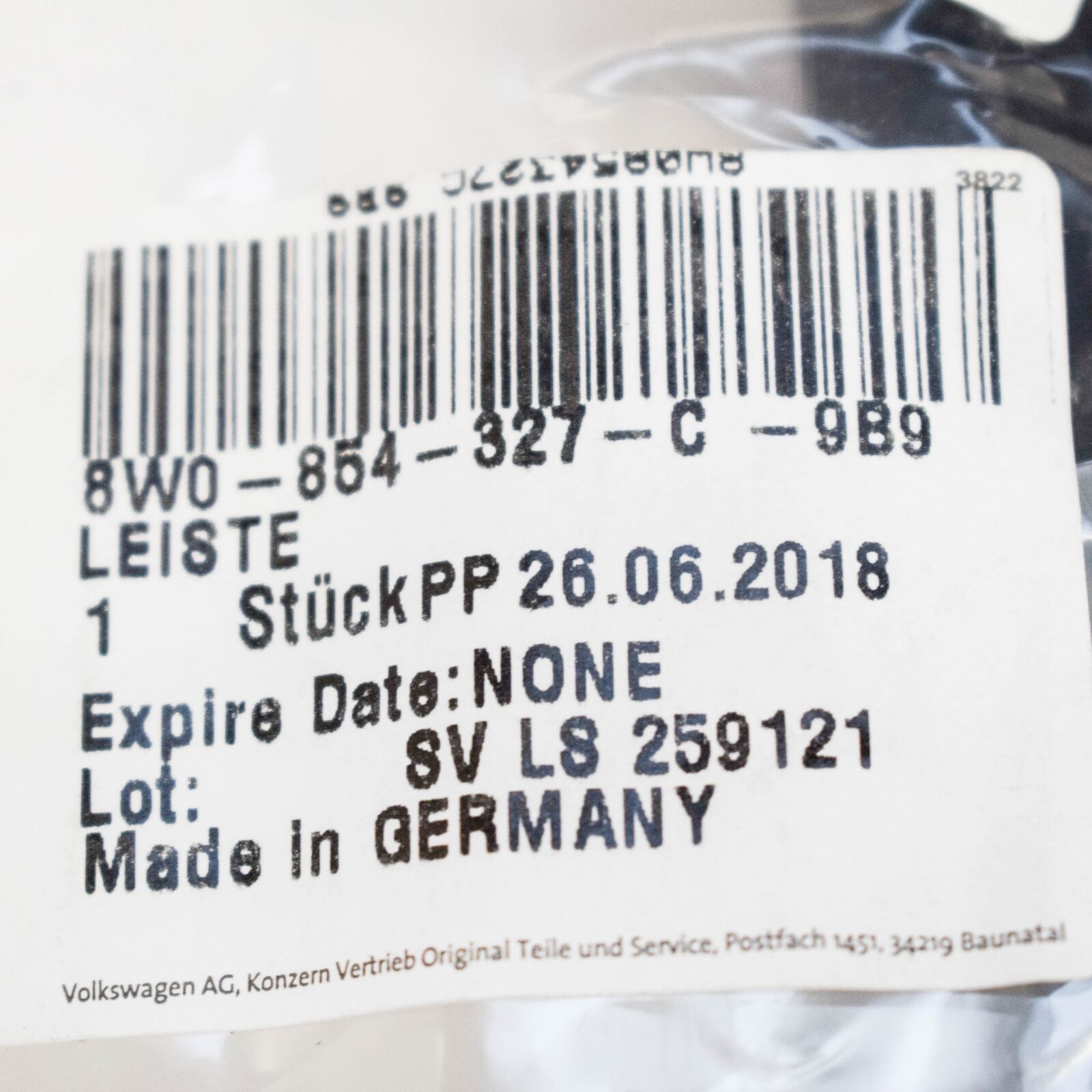 VW/AUDI Water deflector strip – 8W0854327C9B9 | 8W0854327C9B9 | 8W0854327C 9B9 | |