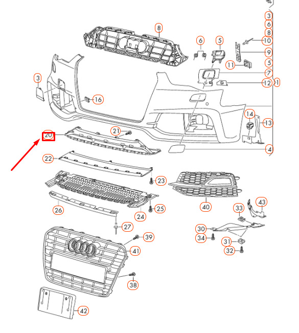 VW/AUDI Grille – 8T0807647C01C | 8T0807647C01C | | |
