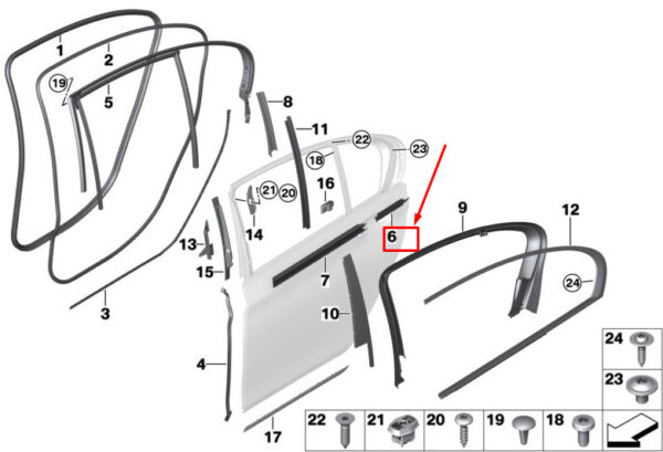 Be the first to review “NEW BMW 7 G11 INNER REAR RIGHT WINDOW HOLLOW SHORT STRIPES 51357380534”