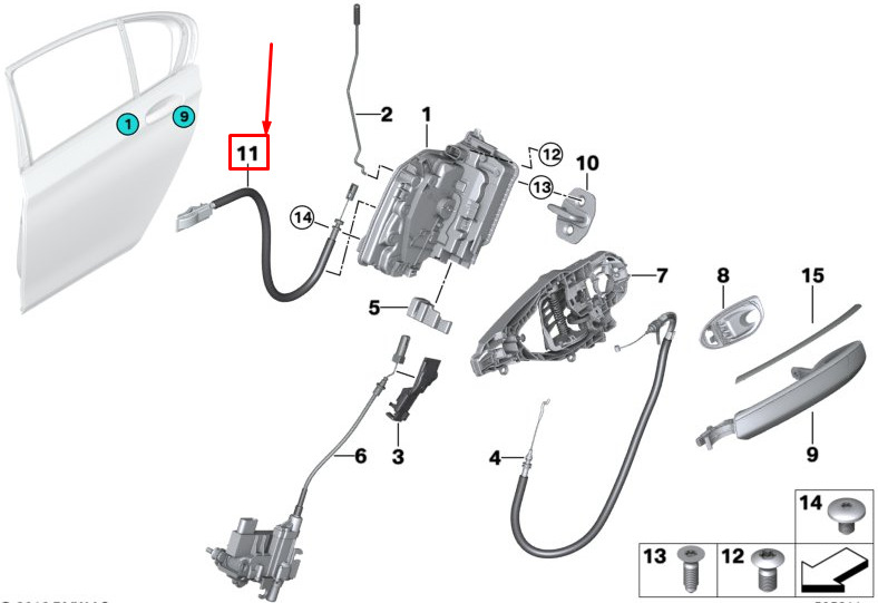 NEW BMW 7 G11 REAR DOOR HANDLE BOWDEN CABLE 51227386931 ORIGINAL