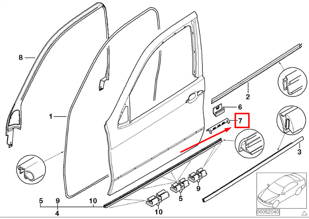 CONDITION: 100% NEW AND GENUINE | NEW BMW X5 E53 REAR DOOR BELT WEATHER STRIP CLAMP 51327000629 7000629 GENUINE | New auto parts online for the best price!