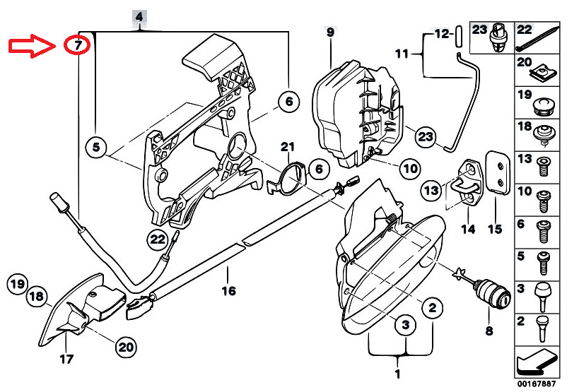 BMW Front door lock bowden cable – 51217036784 | 51217036784 | 51 21 7 036 784 / 51-21-7-036-784 | | 7036784