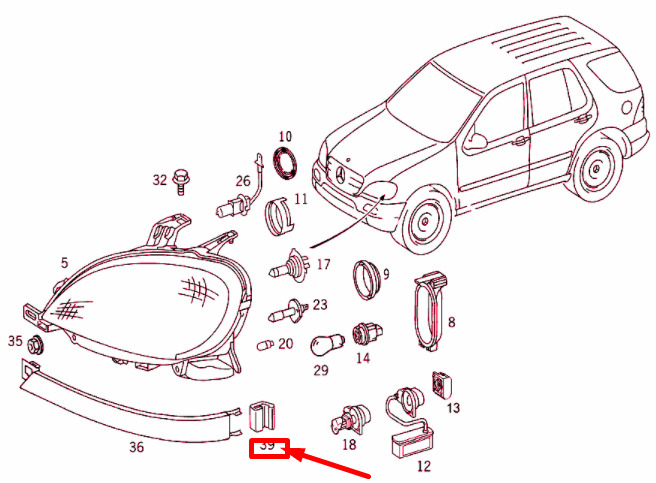 CONDITION: 100% NEW AND GENUINE | NEW MB ML W163 FRONT LIGHTING COVER FIXTURE BRACKET A1638260014 ORIGINAL | New auto parts online for the best price!