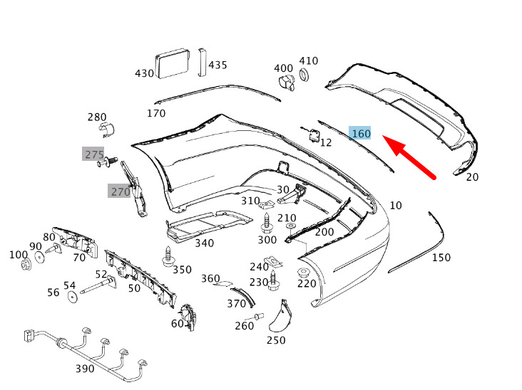 CONDITION: 100% NEW AND GENUINE | New MERCEDES-BENZ C W204 Rear Bumper Center Trim Strip A2048853121 | New auto parts online for the best price!