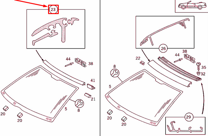 CONDITION: 100% NEW AND GENUINE | NEW MERCEDES-BENZ CLK C208 FRONT WINDSHIELD TOP TRIM A2086700322 OEM | New auto parts online for the best price!