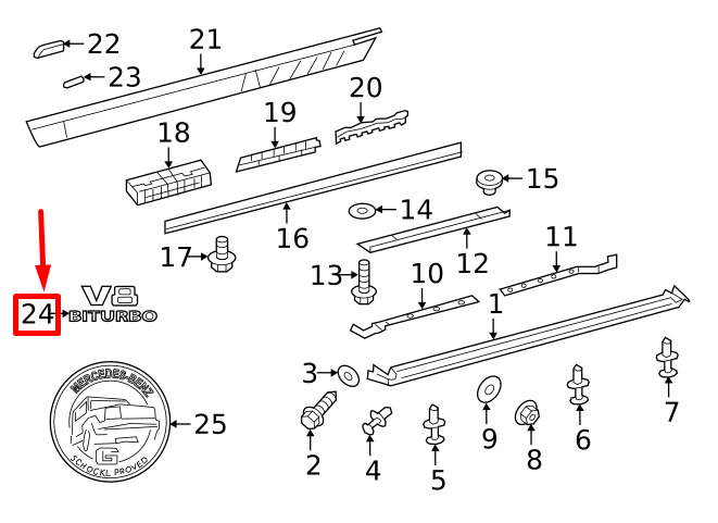 CONDITION: 100% NEW AND GENUINE | NEW MERCEDES-BENZ G W463-V8 BITURBOT TYPE PLATE BADGE A4638172600 ORIGINAL | New auto parts online for the best price!