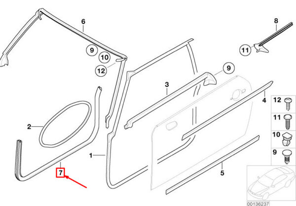 CONDITION: 100% NEW AND GENUINE | NEW MINI CABRIO R52 FRONT RIGHT DOOR SEAL 7130008 51767130008 ORIGINAL | New auto parts online for the best price!