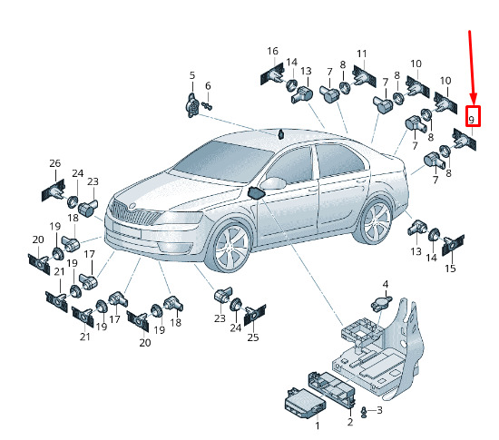 NEW ŠKODA OCTAVIA MK3 5E REAR LEFT PARK SENSOR – CLIP 5E5919485A ORIGINAL