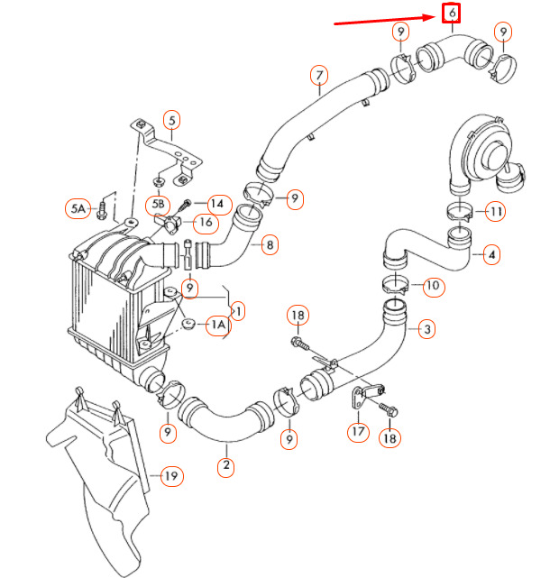 NEW VW POLO 9N CHARGE AIR COOLER PRESSURE HOSE 6Q0145838N ORIGINAL