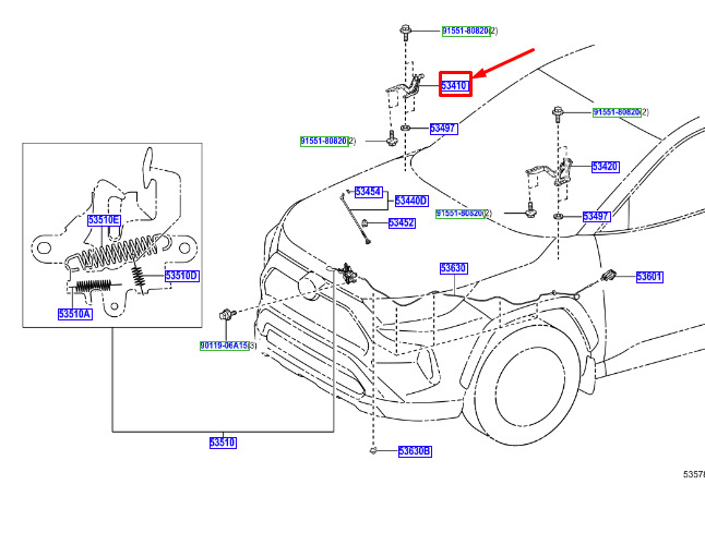CONDITION: 100% NEW AND GENUINE | Toyota RAV 4V XA50 bonnet hinge front right 5341042140, original part | New auto parts online for the best price!
