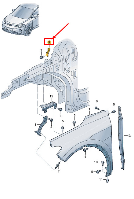 CONDITION: 100% NEW AND GENUINE | VW ID.4 E21 Front Right Fender Holder 11A821430A NEW GENUINE | New auto parts online for the best price!